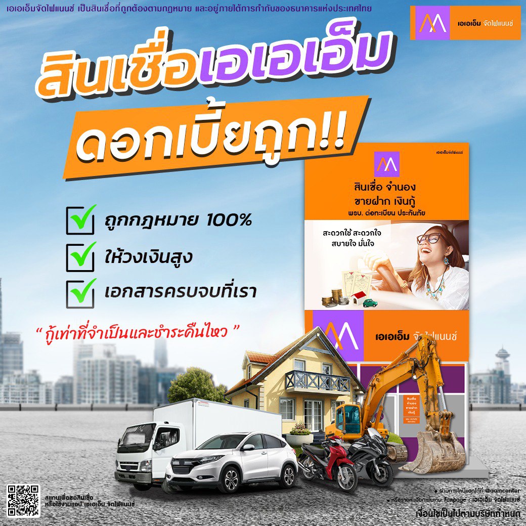 ติดต่อช่องทางอื่นๆ เพิ่มเติมได้ที่โทรเข้ามาเลย : 0819455508 Line@ : @aamcenterApplication : รองรับทั้ง IOS และ Andorid เพียงค้นหาคำว่า เอเอเอ็ม จัดไฟแนนซ์